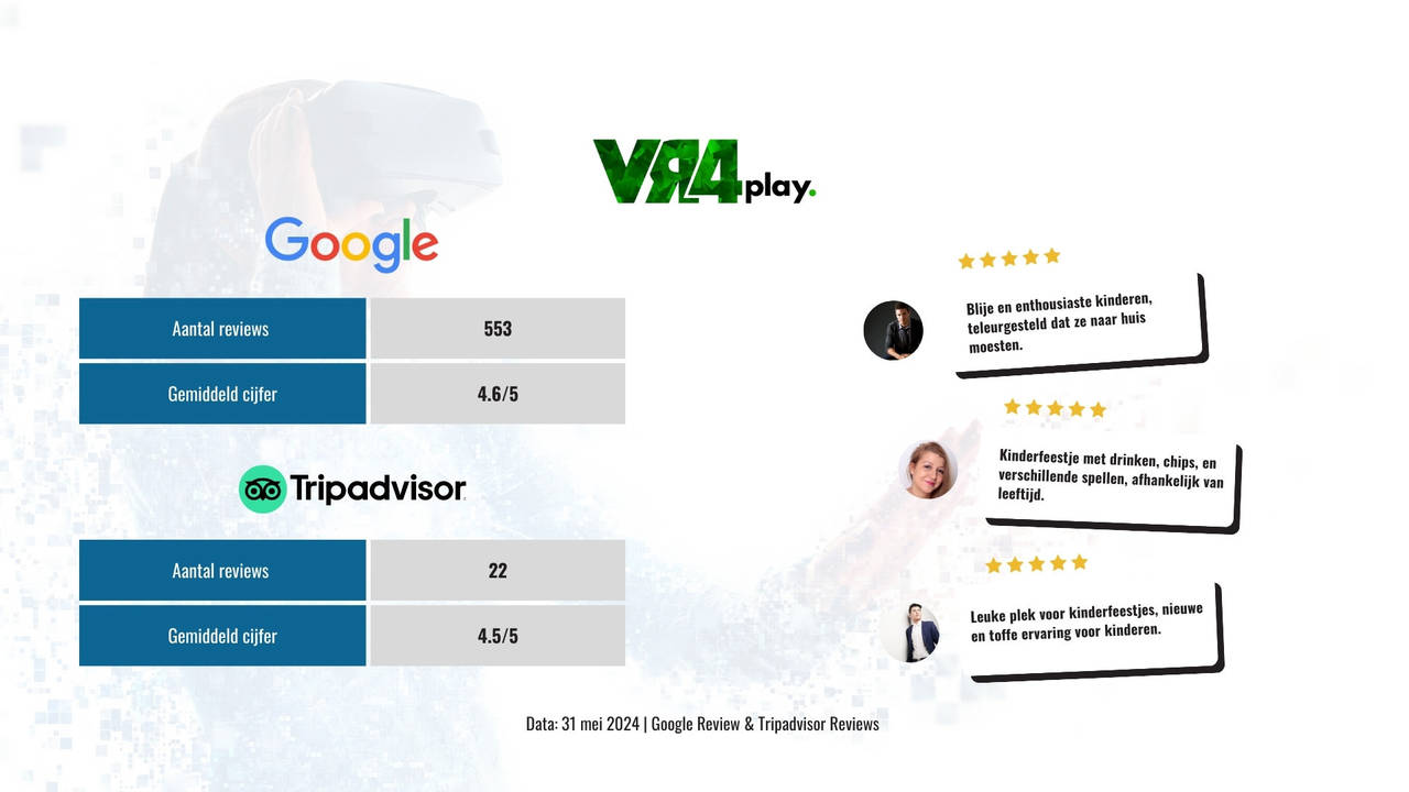 - De best beoordeelde VR-ervaring in Nederland op Tripadvisor (5/5 sterren).