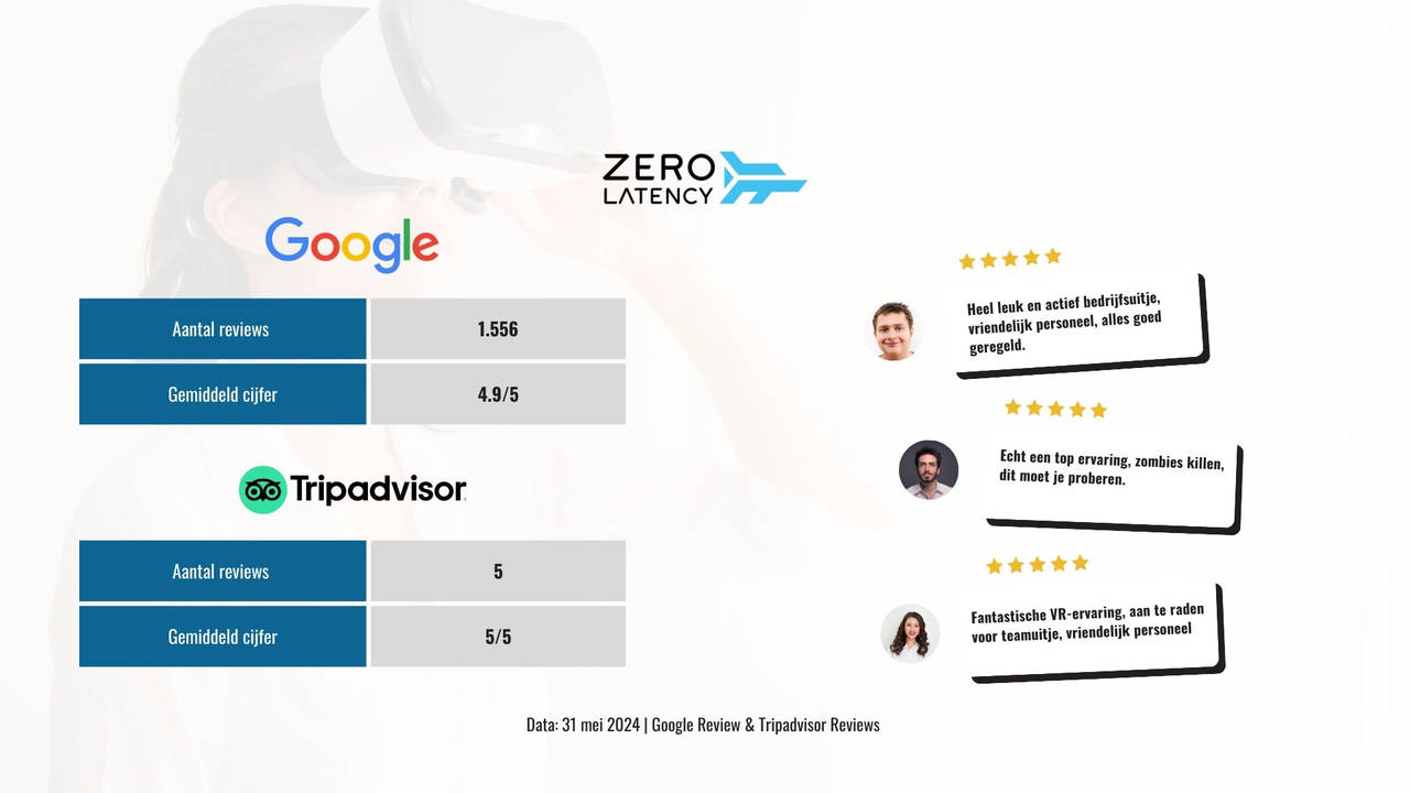 - Zero Latency VR heeft uitstekende beoordelingen en staat bekend om hun state-of-the-art technologie en meeslepende ervaringen.
